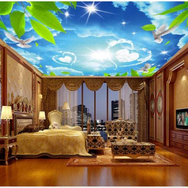 Wallpaper plafon 3D awan biru dengan burung harga grosir termurah | Shopee Indonesia