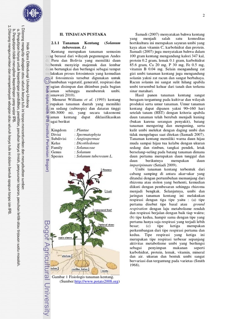 4 BAB II TINJAUAN PUSTAKA 2.1. Tanaman Kentang Kentang