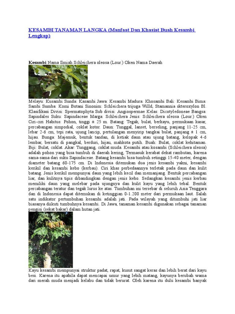 II. TINJAUAN PUSTAKA. A. KESAMBI (Schleichera oleosa Lour) - PDF Download Gratis