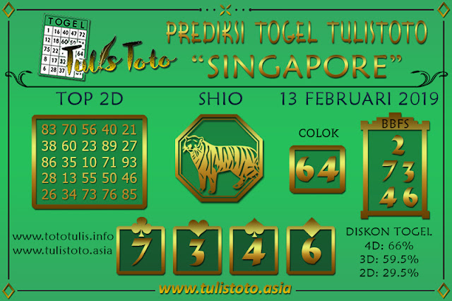 Prediksi Togel SINGAPORE TULISTOTO 13 FEBRUARI 2019