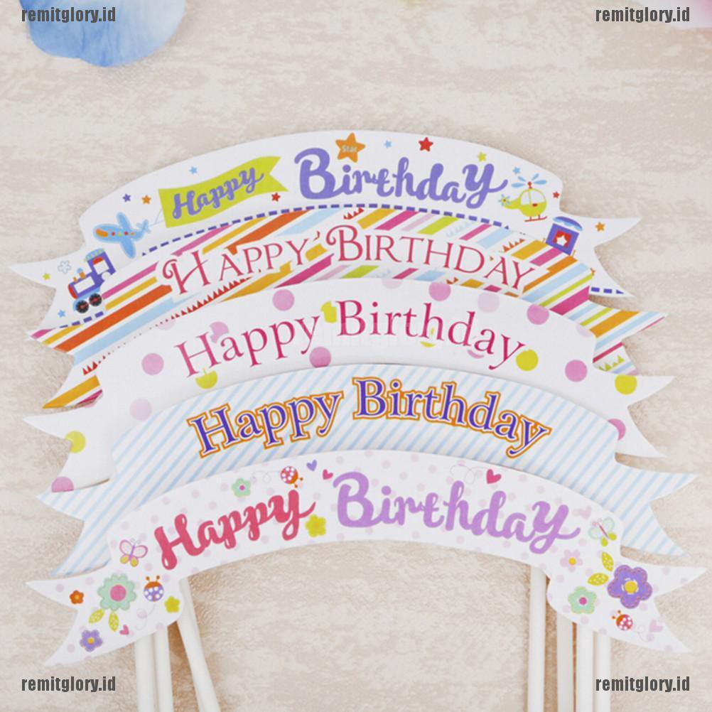 Banner Bendera dengan Bahan Kertas dan Gambar Tulisan “Happy Birthday” untuk Dekorasi Kue | Shopee Indonesia