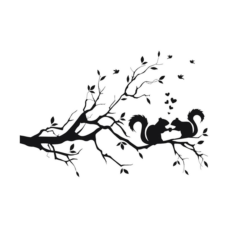 Squirrel On Long Tree Branch Wall Sticker Art Decal Kids Room Decor (Black) | Shopee Singapore