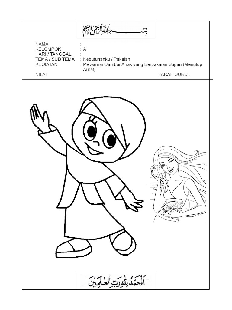 Mewarnai Gambar Kartun Anak Muslimah 116 | alqur’anmulia