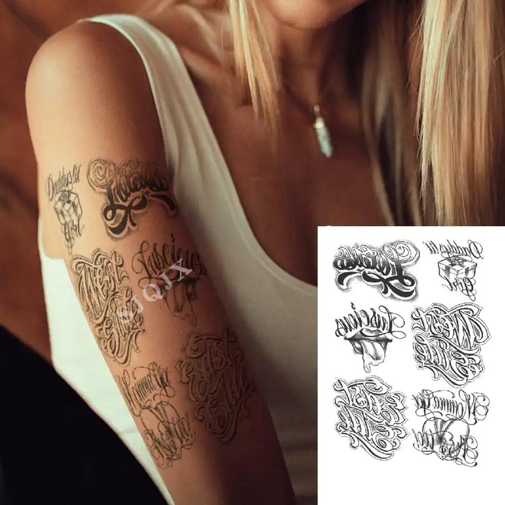 Hitam Warna Tinta Tato Sementara Stiker Burung Tengkorak Setan Kecil Tahan Air Tato Bunga Mawar Jam Tubuh Stiker Tato untuk Lengan| | - AliExpress