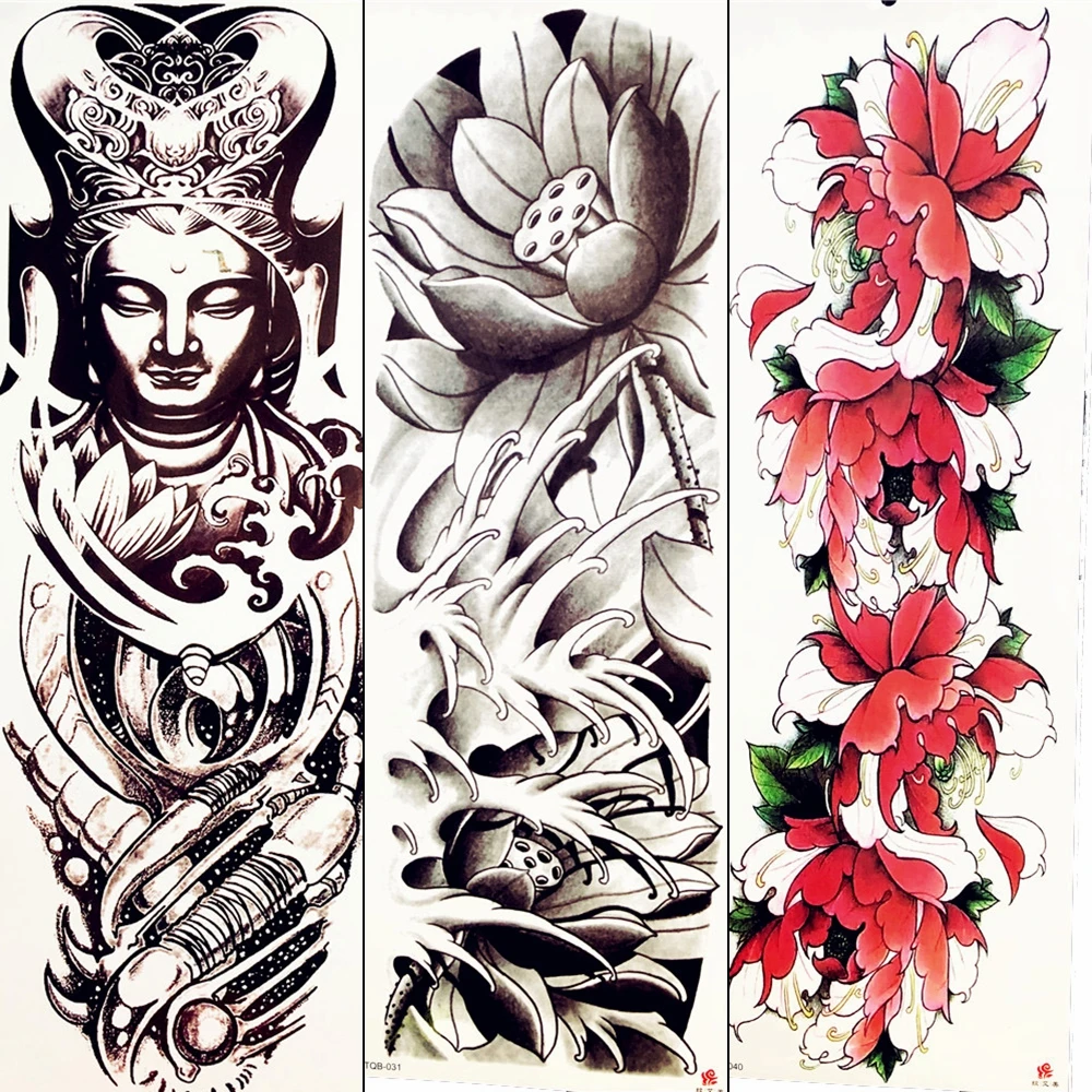 Buddha Sementara Hitam Gambar Tato Bunga Perlengkapan Panjang Lengan Tubuh Tato Stiker Pria Wanita Kaki Tato Buddhisme Lengan|stickers men|drawing tattoosleg tatoo - AliExpress