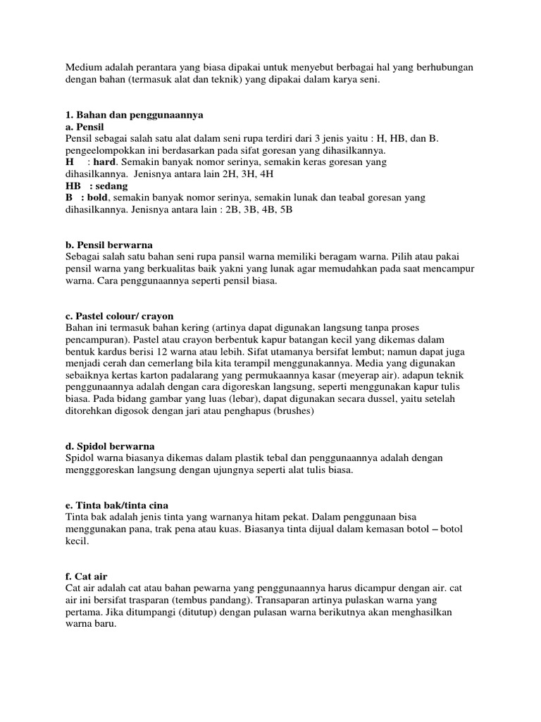 Medium Berkarya Seni Rupa Dua Dimensi | Mikirbae.com