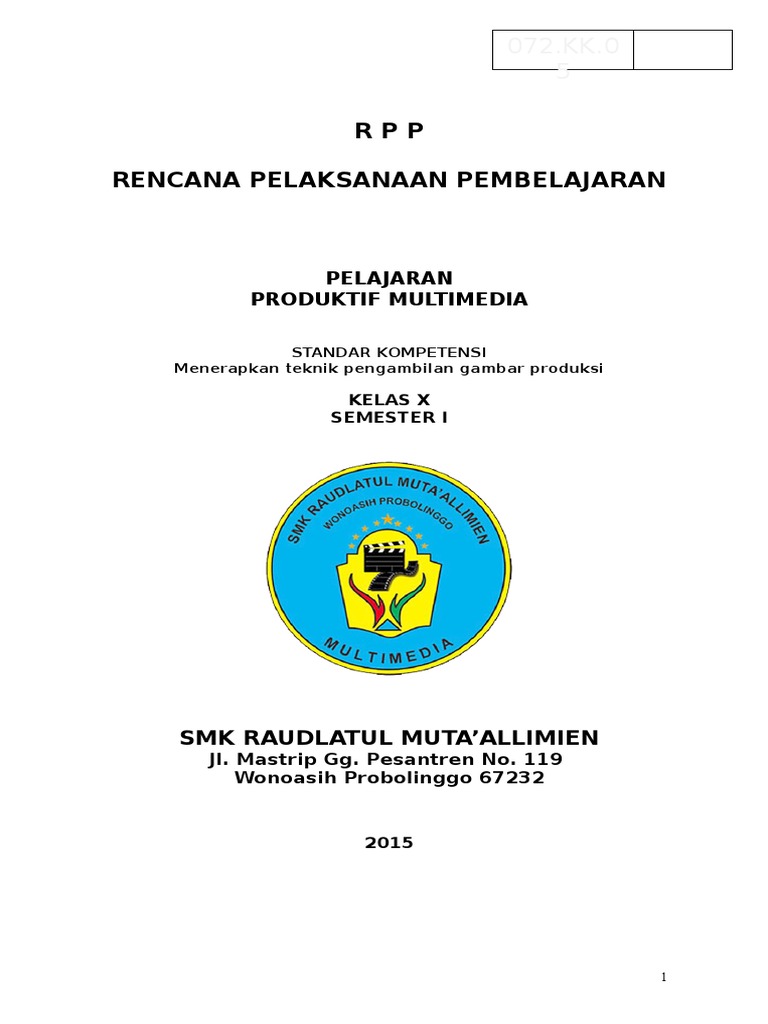 072 Kk 05 Rpp Menerapkan Teknik Pengambilan Gambar Produksi