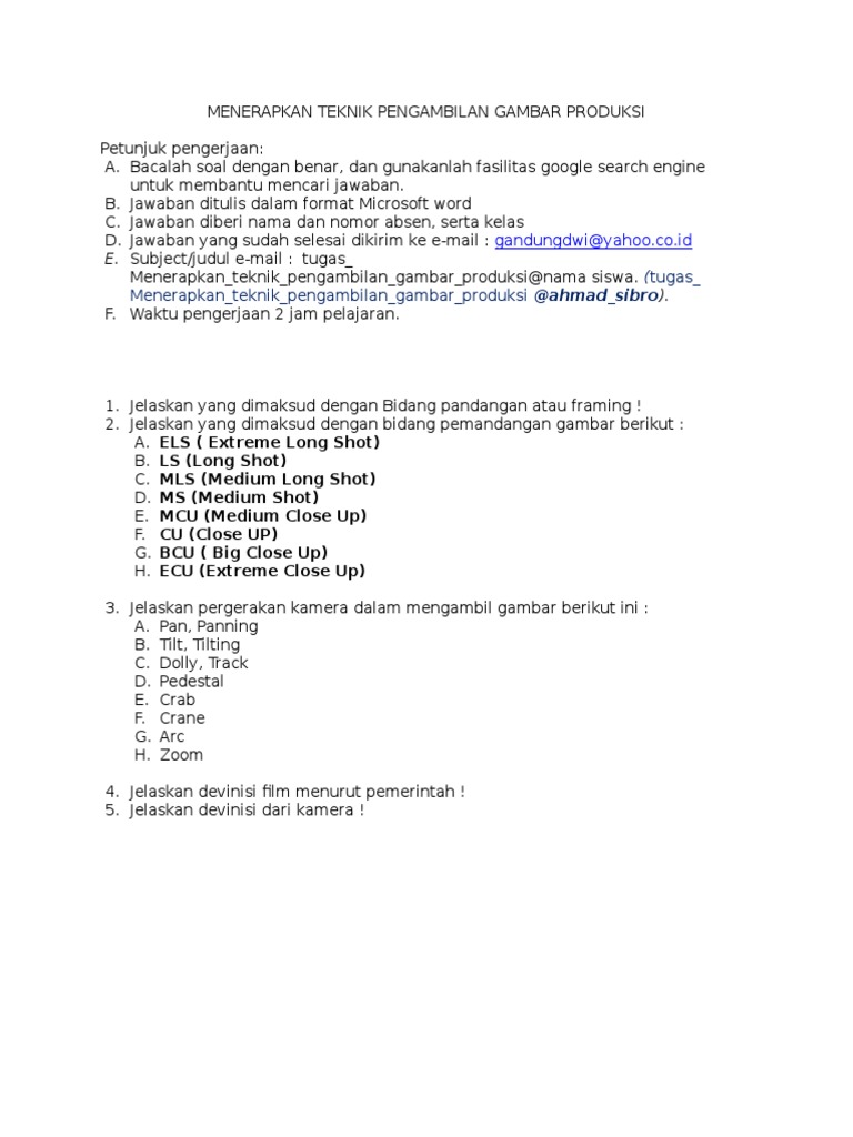 Soal Menerapkan Teknik Pengambilan Gambar Produksi - [DOC Document]