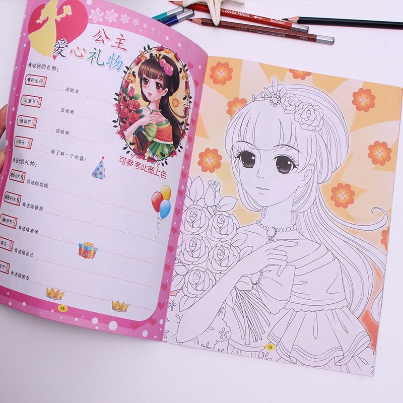 Putri mewarnai buku anak-anak TK buku gambar buku gadis cantik mewarnai gambar 3-9 tahun gadis berus | Shopee Indonesia
