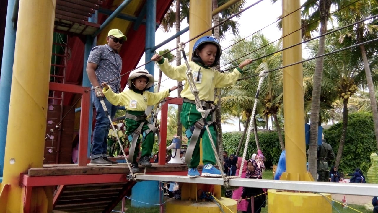 Latih Keseimbangan Dengan Berjalan Anak Di atas Papan Titian