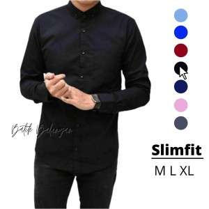 Jual kemeja pria hitam putih polos HEM slimfit PERRI lengan panjang - Jakarta Pusat - Toko Miranti Murah | Tokopedia