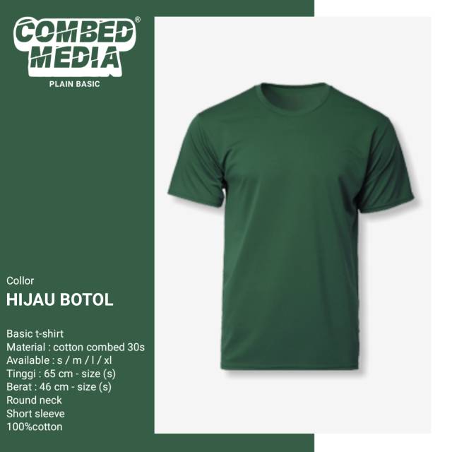Combed Media Baju Kaos Polos Hijau Botol Cotton Combed 30s | Shopee Indonesia