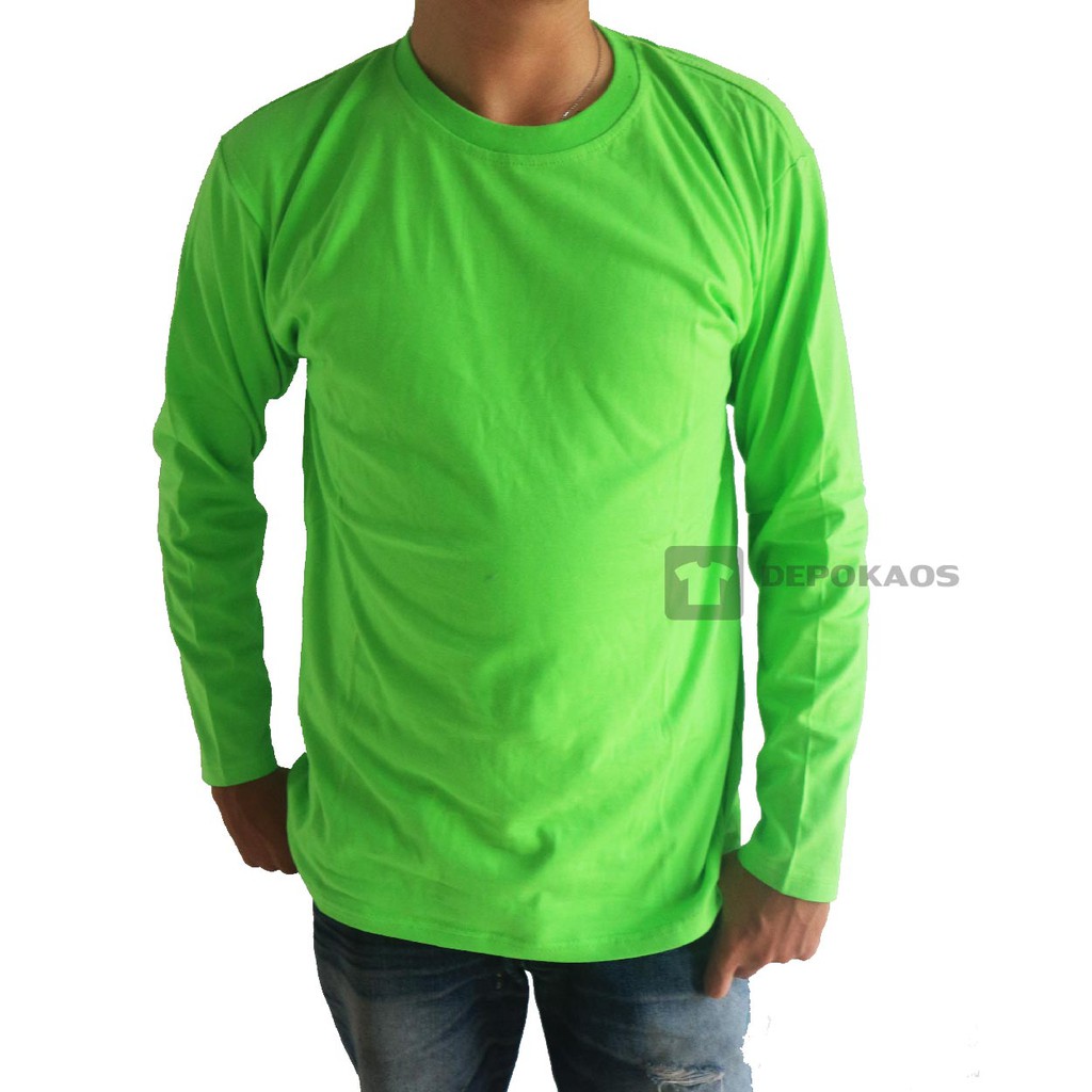 KAOS POLOS LENGAN PANJANG - HIJAU STABILO - KATUN COMBED 24S - UNISEX | Shopee Indonesia