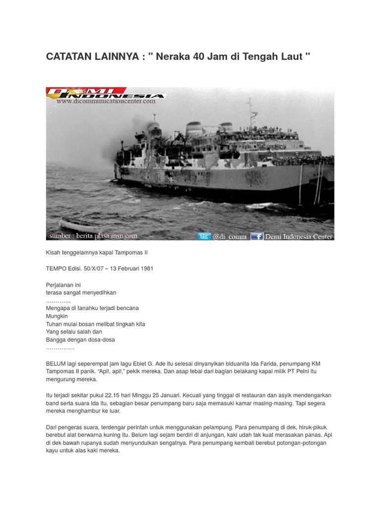 Tragedi Tenggelamnya Kapal Tampomas II .Web view“Pergi! Jangan tonton kematian kami!”, teriak - [DOC Document]