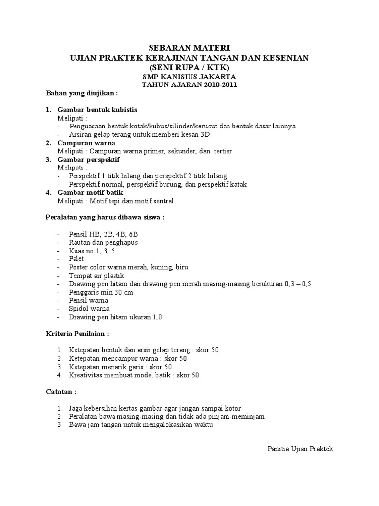 Kisi-Kisi, Soal dan Kunci Jawaban PAS Seni Budaya SMP Kelas 7 Semester Ganjil