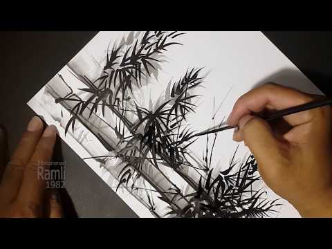 cara cepat melukis bambu menggunakan tinta Cina - bamboo painting - YouTube