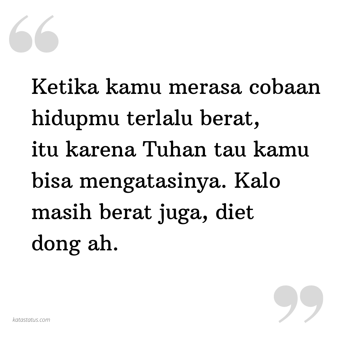Kata Status Lucu Gokil Ngakak: Ketika kamu merasa cobaan hidupmu terlalu berat, itu karena Tuhan tau kamu bisa mengatasinya. Kalo masih berat juga, diet dong ah. - KataStatus.COM