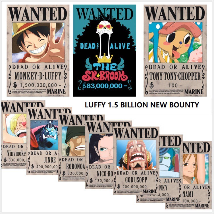 Poster One Piece - BOUNTY POSTER WANTED One Piece karakter Luffy dan kru Mugiwara | Shopee Indonesia