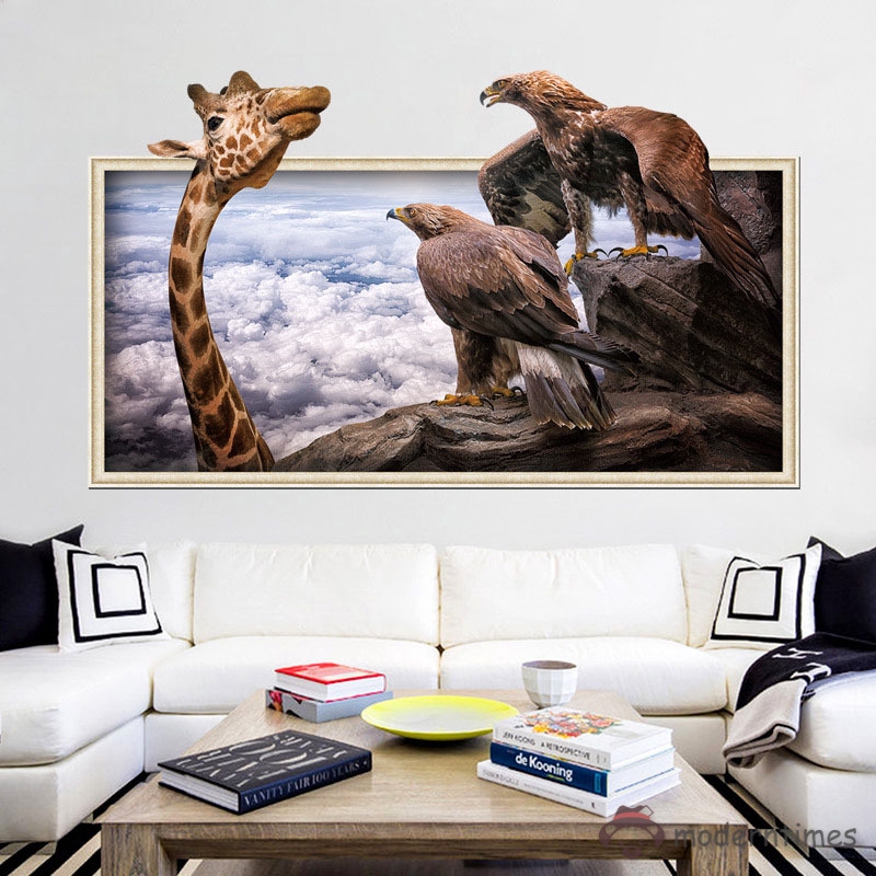 COD] Stiker Dinding 3D Gambar Hewan Jerapah / Elang untuk Dekorasi Kamar Tidur / Ruang Tamu | Shopee Indonesia
