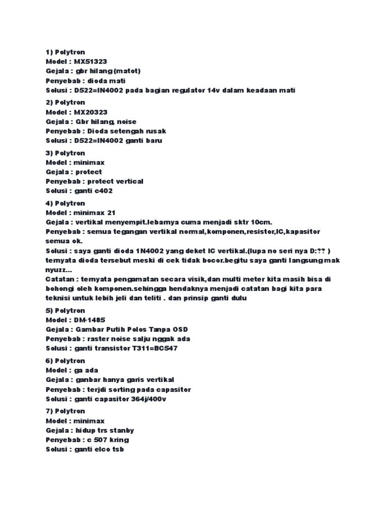 Ndory servis: Daftar kerusakan tv Polytron - (2)