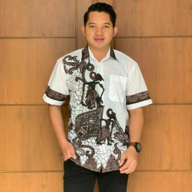 Kemeja batik wayang kulit putih printing original BAJU BATIK PRIA KSB085 Hem batik cowok | Shopee Indonesia