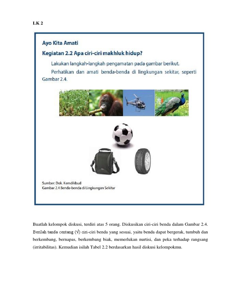ayo kita amati kegiatan 2.2 apa ciri ciri makhluk hidup? - Brainly.co.id