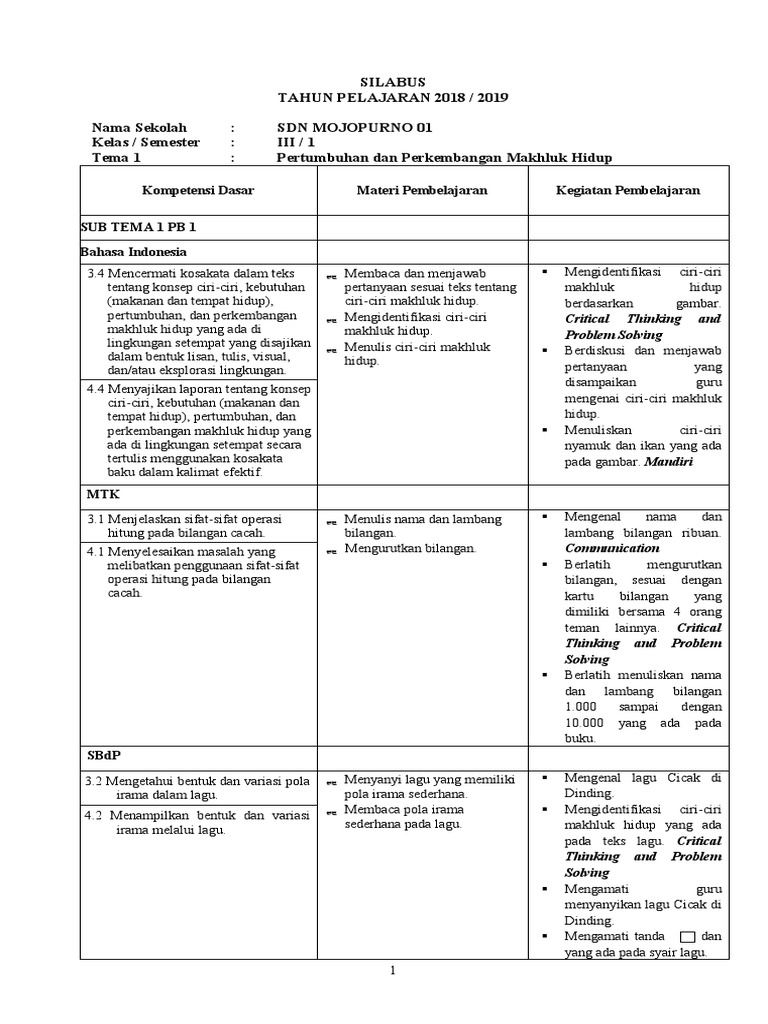 Silabus k13 kelas 3 Revisi 2018 Semester Ganjil - Info Pendidikan Terbaru