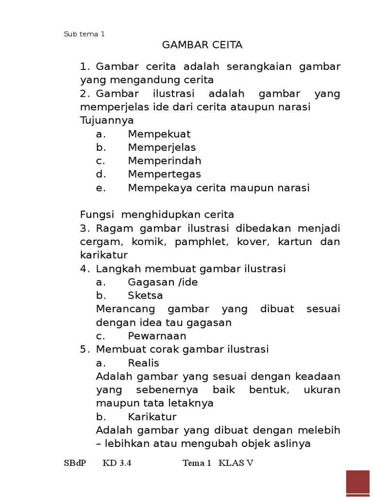 Materi Tematik, Corak Gambar Cerita atau Ilustrasi