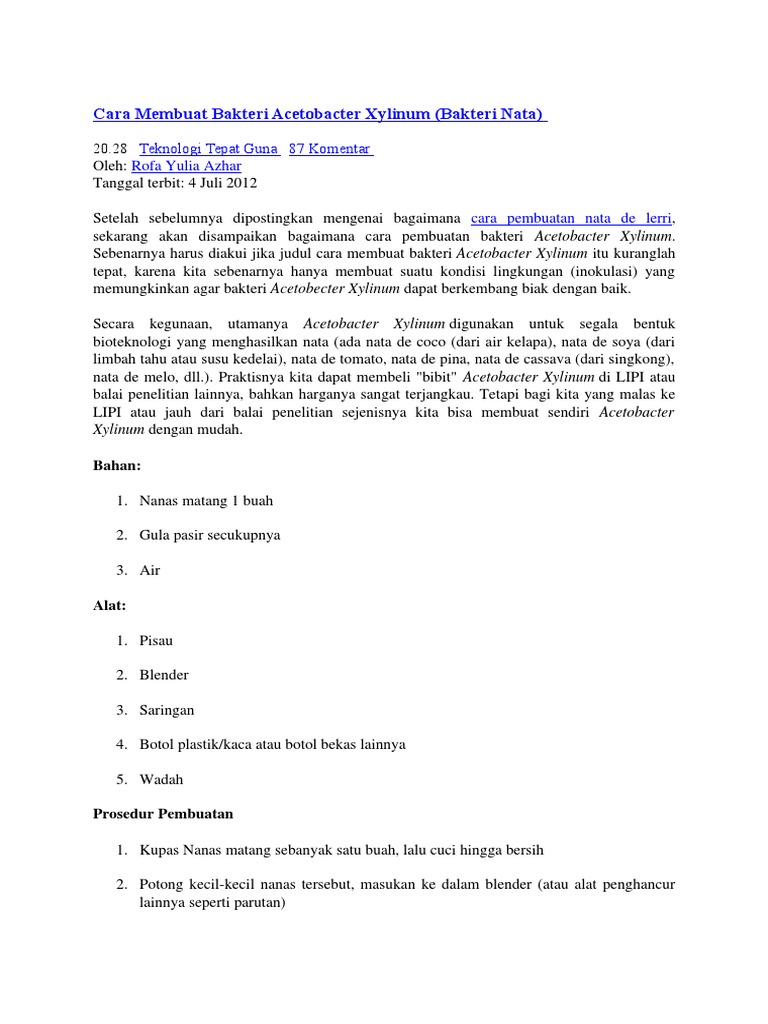 RofaYuliaAzhar.com: Cara Membuat Bakteri Acetobacter Xylinum (Bakteri Nata)