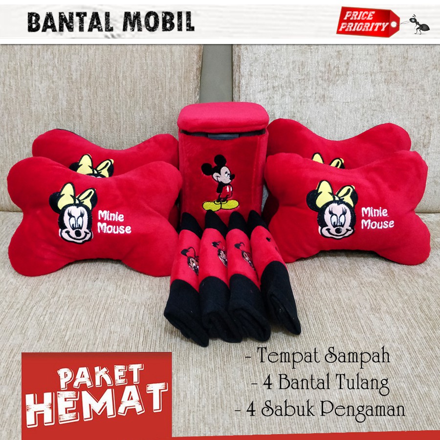 BANTAL MOBIL MICKEY / TEMPAT SAMPAH MOBIL MICKEY / PAKET HEMAT AKSESORIS MOBIL MICKEY MINIE | Shopee Indonesia