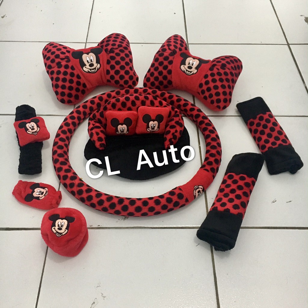 Car Set Bantal Mobil Tipe 9 in 1 Gambar Karakter Mickey Mouse Warna Merah / Bantalan Empuk Komplit | Shopee Indonesia
