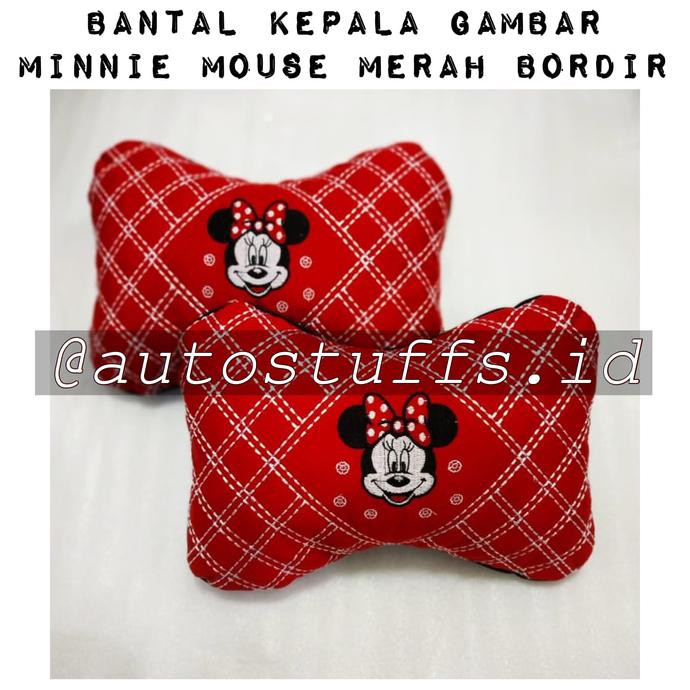Bantal Mobil } Bantal Kepala Gambar Minniemouse Merah Bordir/Bantal Untuk Mobil | Shopee Indonesia