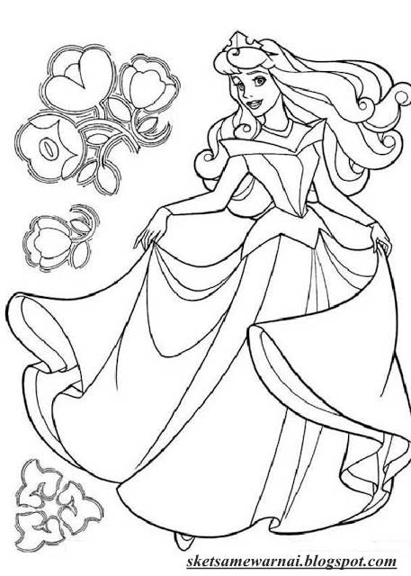 Sketsa Mewarnai Gambar Barbie Aurora - Sketsa Mewarnai