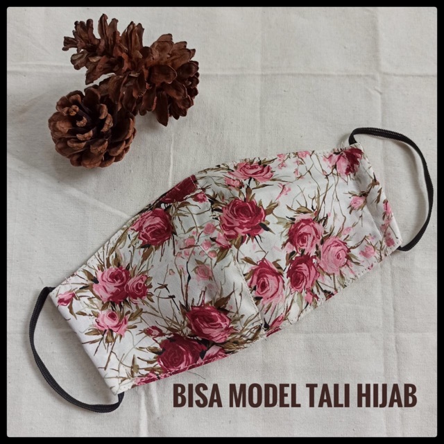 Masker kain katun jepang 3 lapis ply ada slot tisu motif bunga cantik lucu putih merah | Shopee Indonesia