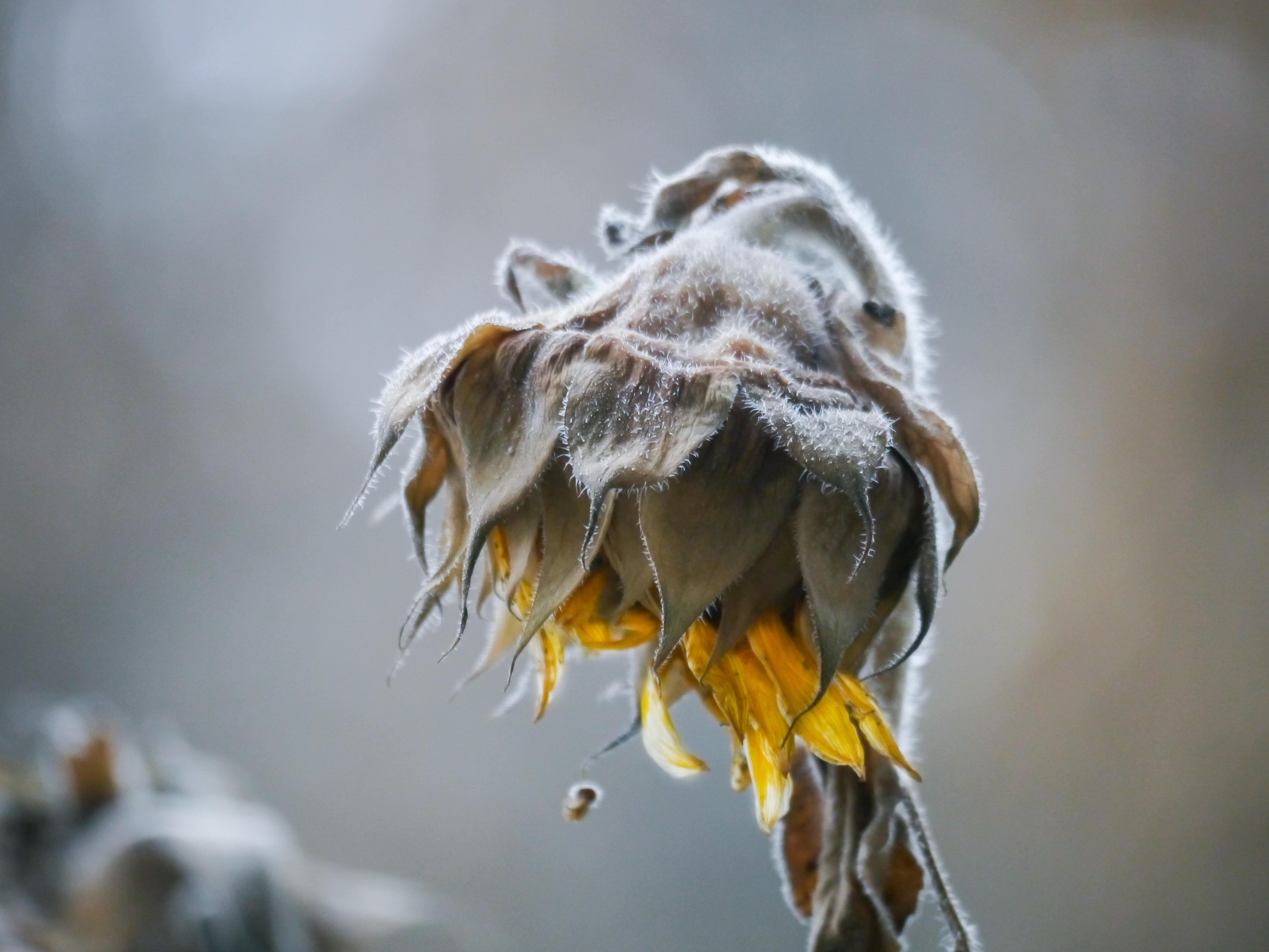 Gambar : alam, mekar, dingin, menanam, sinar matahari, daun bunga, berkembang, embun beku, Es, warna, musim gugur, botani, kuning, Flora, bunga matahari, bunga liar, bunga-bunga, merapatkan, es, indah, fotografi makro, tanaman berbunga,