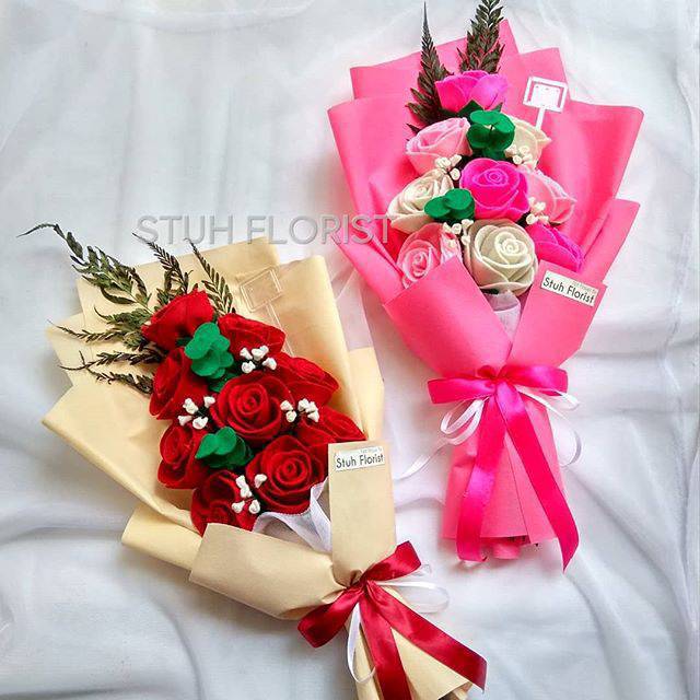 Buket Bunga Mawar Merah Muda Flanel Felt Flowers Bouquet Hadiah Wisuda Buket Wisuda | Shopee Indonesia