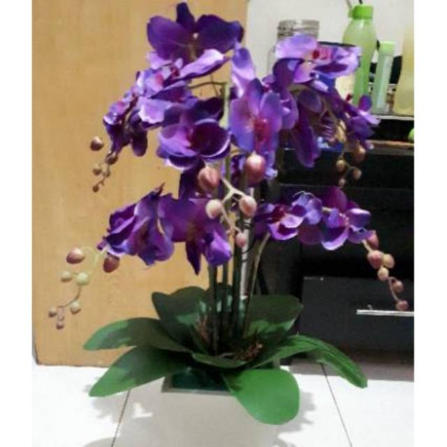 Bunga anggrek bulan ungu tua tanpa vas | Shopee Indonesia