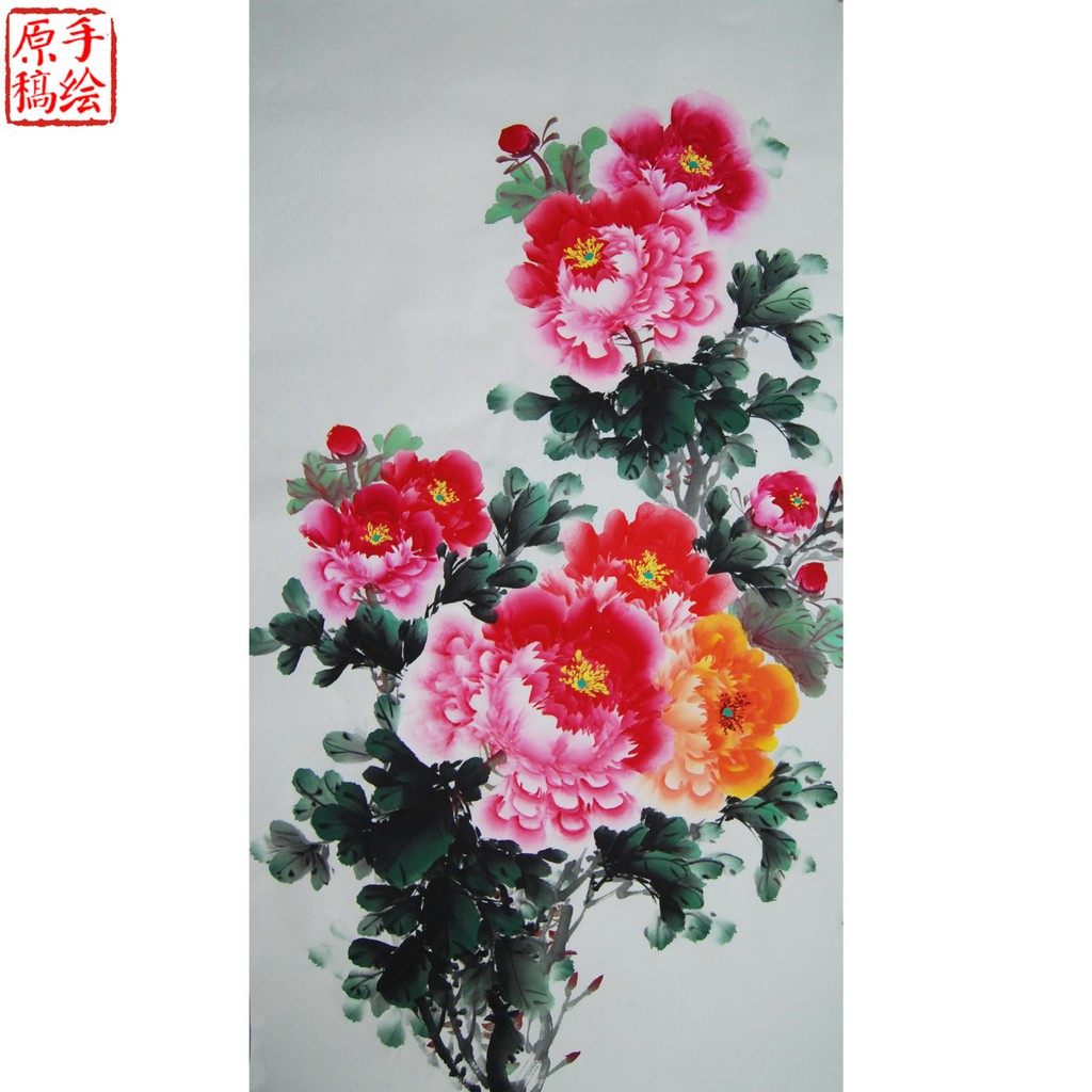 Lukisan Tangan 3 Kaki Gambar Bunga Peony Burung Untuk Dekorasi Kamar Tidur | Shopee Indonesia