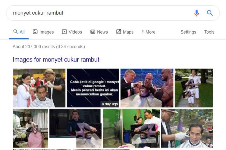 Mengapa Saat Ketik “Monyet Cukur Rambut” di Google Muncul Gambar Jokowi? Ini Jawabannya - Semua Halaman - Nextren.grid.id