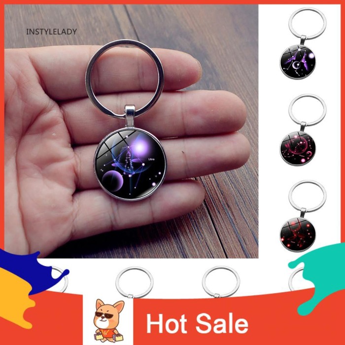 12 Constellation Galaxy Gambar Artistik Gantungan Kunci Libra Scorpio Sagitarius Permata Kaca Liontin Gantungan Kunci Zodiak Hadiah Ulang Tahun|Gantungan kunci| - AliExpress