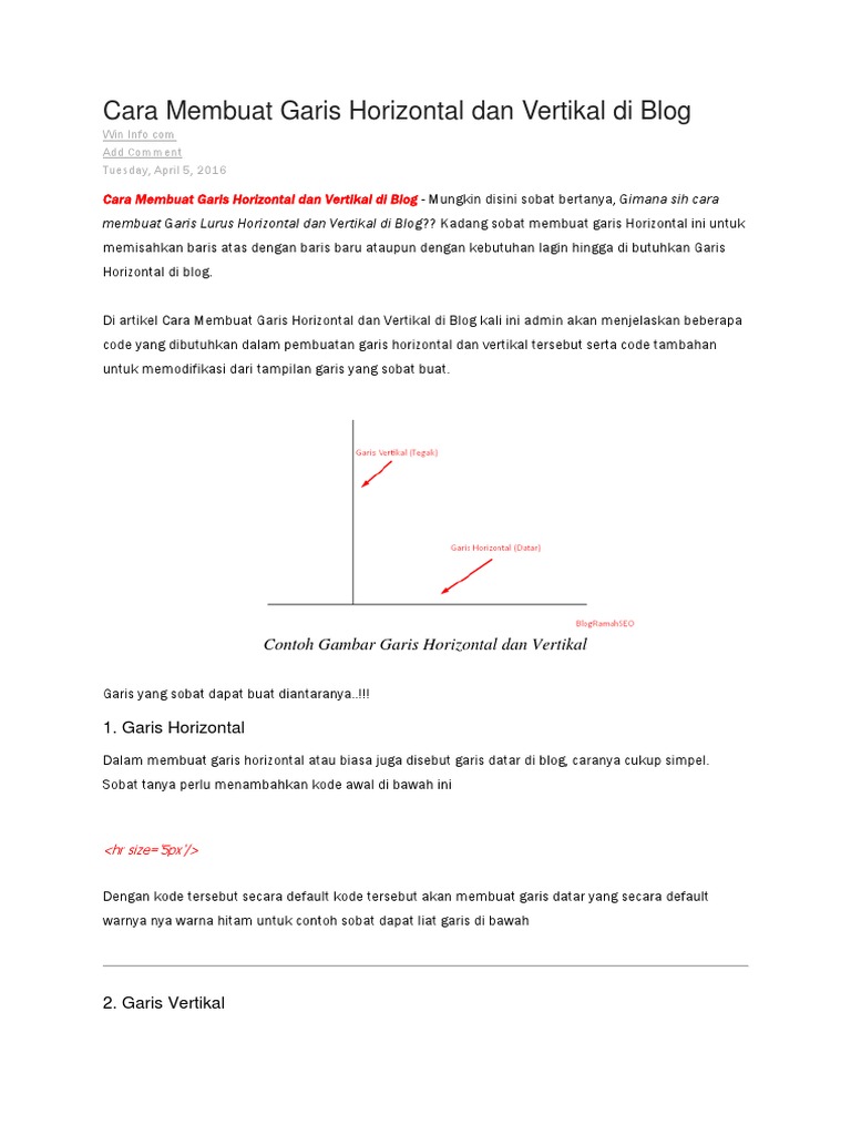 Cara Membuat Garis Horizontal Dan Vertikal Di Blog