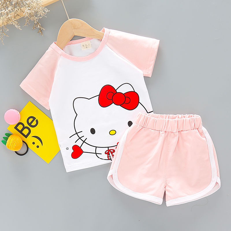 Setelan Kaos T-Shirt Casual Anak Laki-laki / Perempuan Lengan Pendek Gambar Kartun + Celana | Shopee Singapore