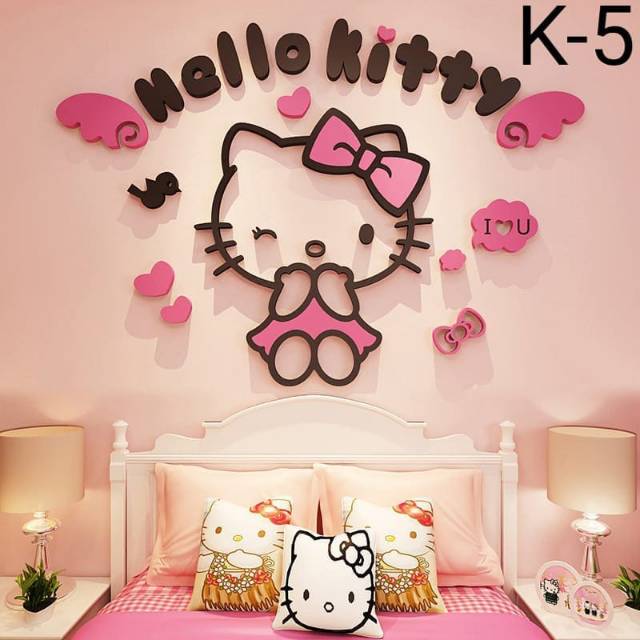 Stiker Dinding Gambar Hello Kitty 3D untuk Kamar Tidur Anak | Shopee Indonesia