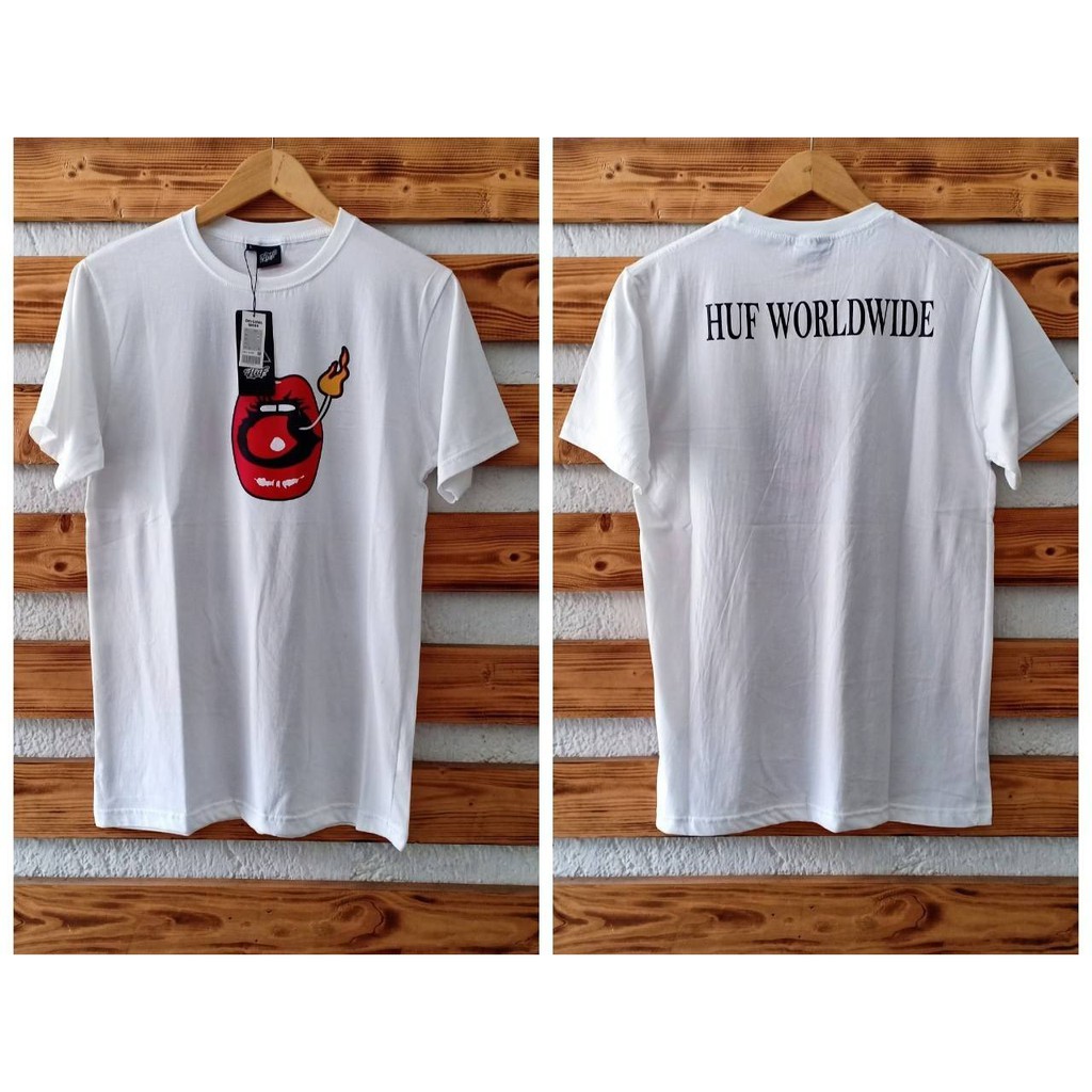 KAOS PUTIH GAMBAR BIBIR HUF WORLDWIDE | Shopee Indonesia