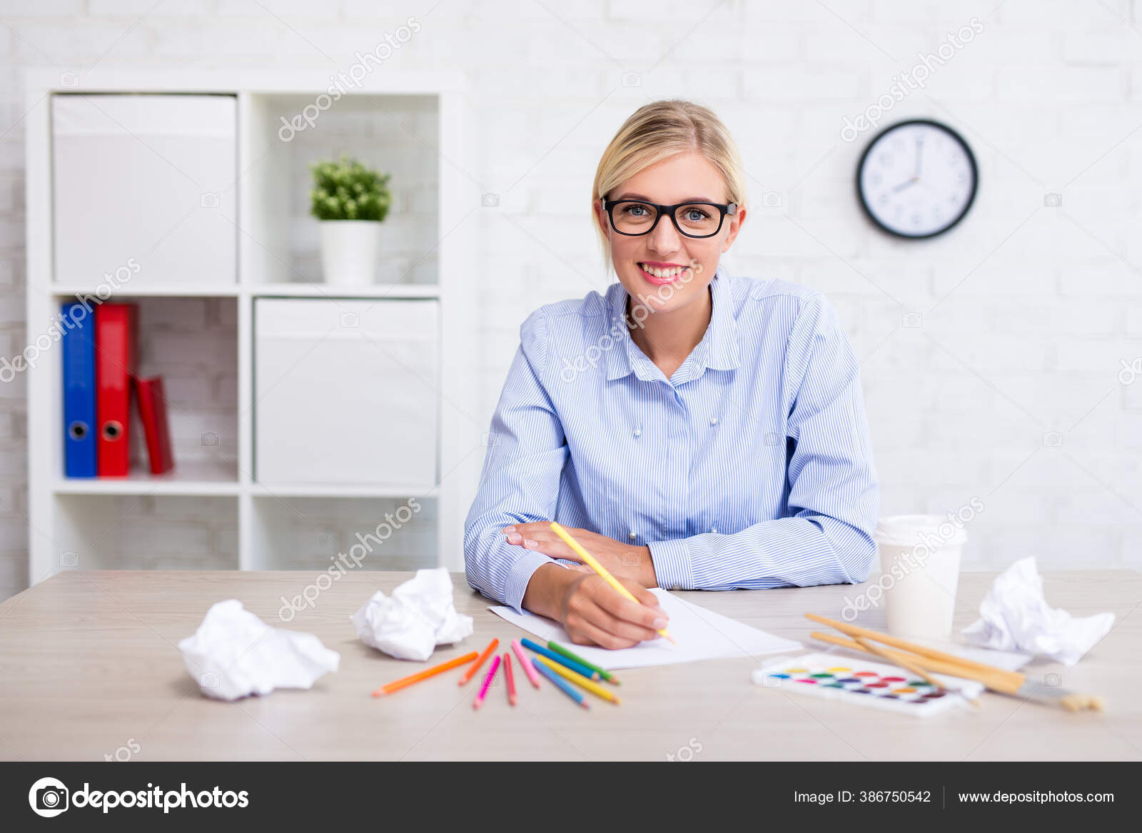 Kreativitas Ide Dan Konsep Inspirasi Perempuan Kreatif Menggambar Sesuatu Dengan — Stok Foto © Di-Studio #386750506