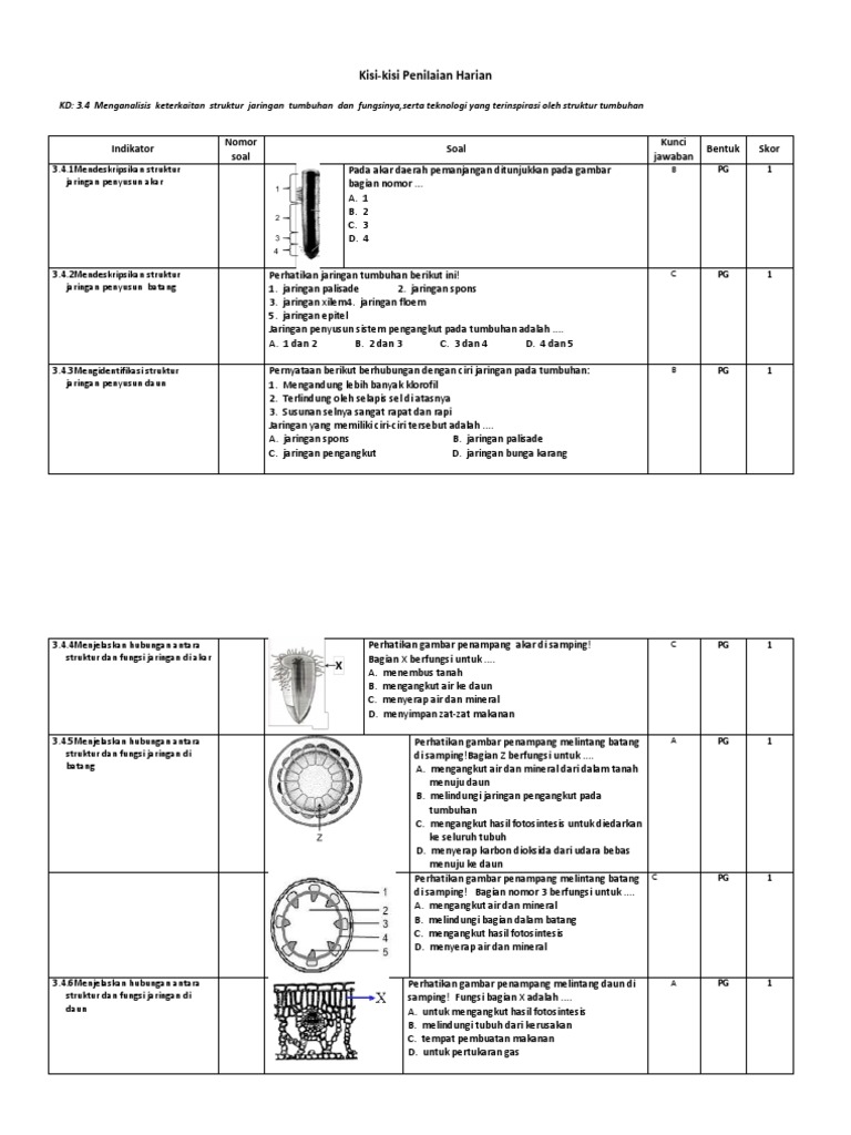 Kisi2 Materi Struktur Jaringan Pada Tumbuhan