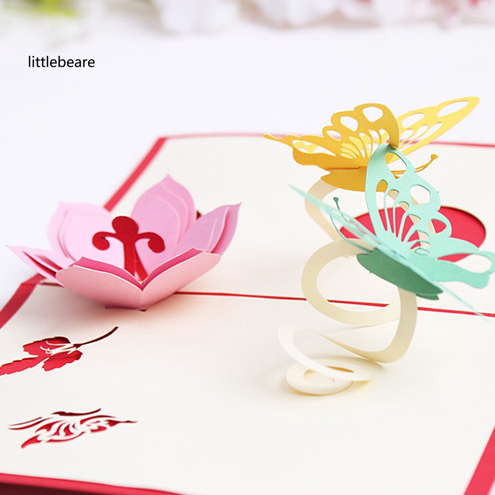 Kartu Ucapan Pop Up 3D Gambar Bunga + Kupu-Kupu untuk Hadiah Valentine / Ulang Tahun | Shopee Indonesia