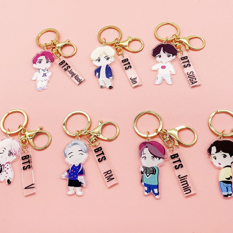 BTS Bantan Boys New Cartoon Arcylic Keychain Cute Bag Key Chain Gift Pendant | Shopee Singapore