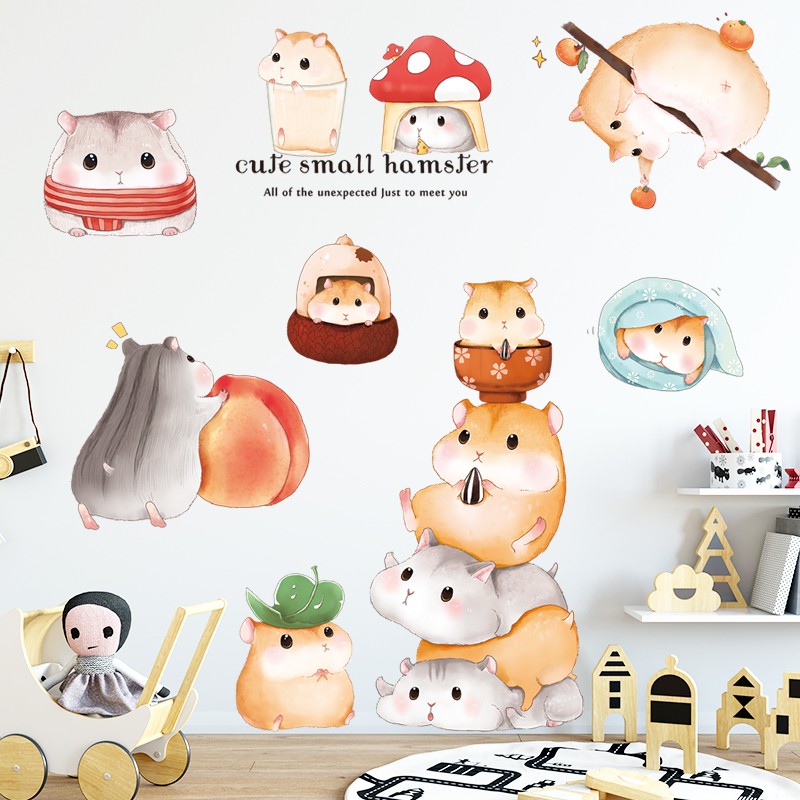 Stiker Dinding dengan Bahan Mudah Dilepas dan Gambar Kartun Hamster untuk Dekorasi Kamar Anak | Shopee Indonesia