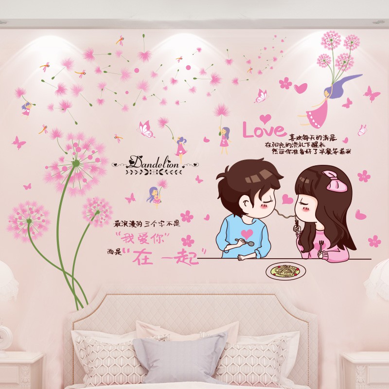 Perlengkapan pernikahan kreatif, Dekorasi kamar pernikahan, Lucu kartun hangat pasangan romantis tata letak stiker decal | Shopee Indonesia